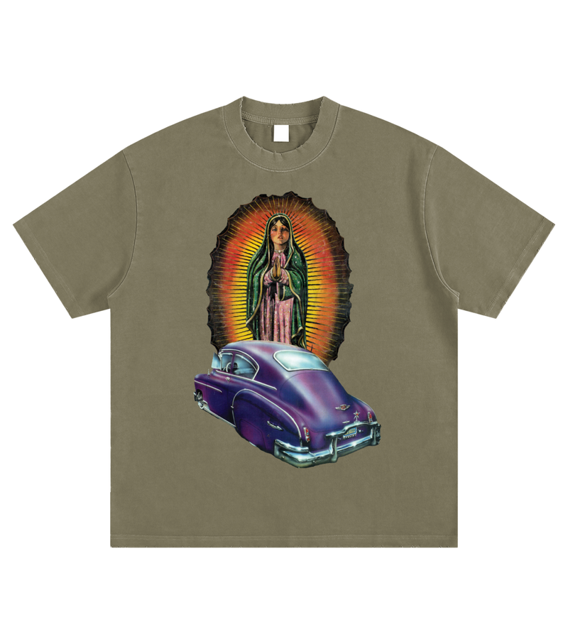 The Prayer Heavyweight Vintage Washed Frayed T-Shirt is crafted from 100% premium cotton with 430g heavyweight fabric. Featuring vintage washed distressing and raw-edge details, this unisex tee delivers rugged, street-ready style with a timeless Chicano-inspired aesthetic.
